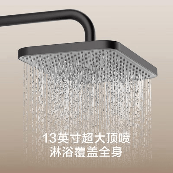 这款花洒的顶喷尺寸达310mm,水雾覆盖面积宽广,洗个澡基本全身被雨淋包围,爽快感十分好。顶喷还能360°自由旋转,角度随你调,想从哪个角度淋,就哪个角度,精致又贴心。隐藏式瀑布水流设计,水流柔和不飞溅,浴室干净少了不少“水花战场”的尴尬。