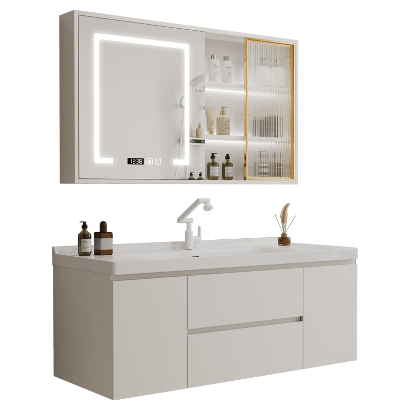 浴美优品的澡堂柜在规划上交融了智能镜柜与陶瓷一体盆的立异理念,带来史无前例的便当与运用体会。幻想一下,清晨起床,您走进澡堂,智能镜柜内置的照明体系为您供给柔软的光线,陶瓷一体盆的规划让您无需忧虑清洁问题,轻松享用洗漱的趣味。